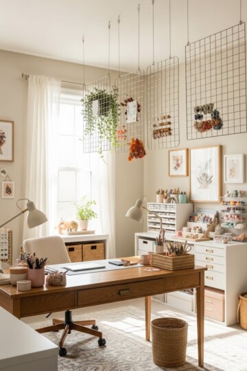 15 Craft Room Office Ideas with Hanging Wire Grids